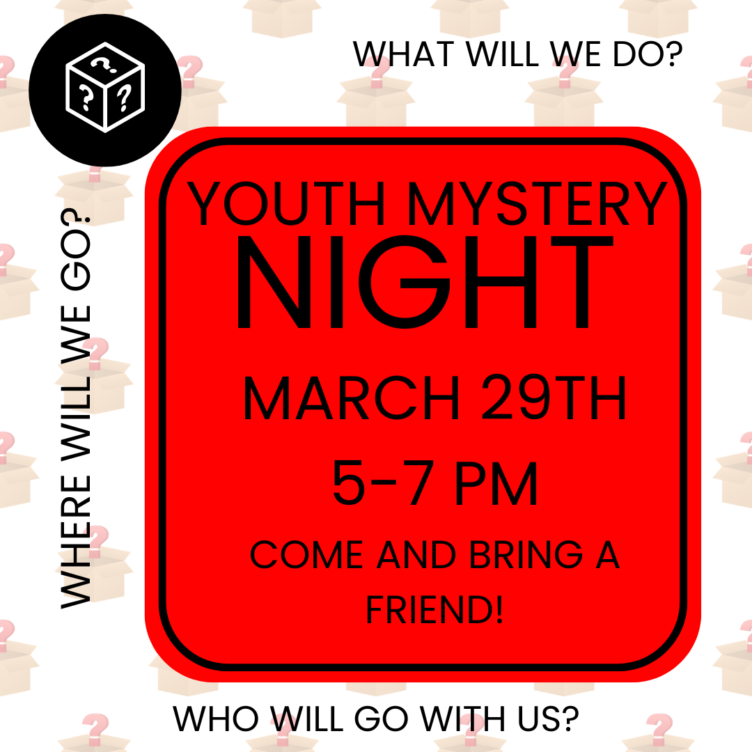 Sunday Night Youth Most Sunday evenings, youth in 6th – 12th grade gather for food, fellowship and fun! We have a snack supper at 5:00 pm provided by parents/volunteers, followed by a devotion and a different activity each week. Once a month, we head out into the community for a different event that have included escape rooms, bowling, skating and a progressive dinner.
